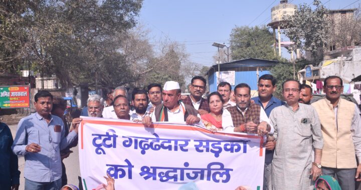टूटी खूनी गढ्ढेदार सड़कों के खिलाफ कांग्रेस का अनूठा सत्याग्रह त्यौहार और इम्तिहान के वक्त भी सरकार संवेदनहीन