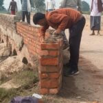 टूटी पड़ी पैराफिट बॉल की मरम्मत करते कर्मचारी, खबरों के बाद लिया जिम्मेदारों ने संज्ञान, बनवाई गई टूटी पैराफिट बॉल