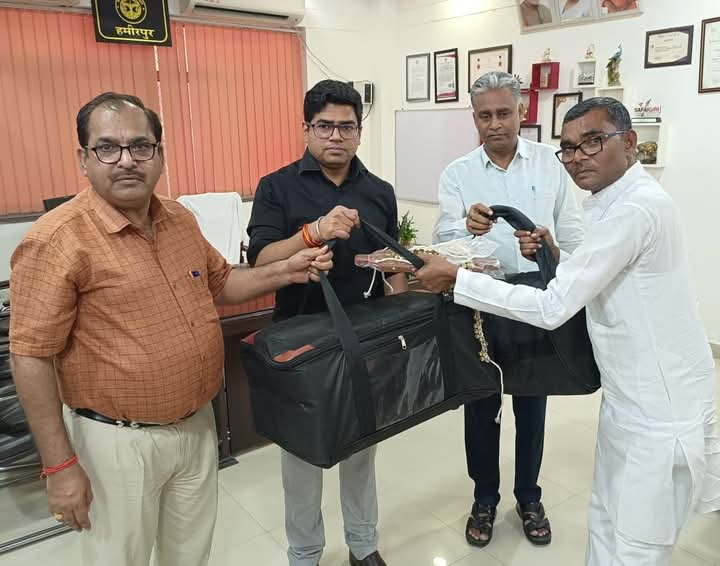 उपदेश टाइम्स, हमीरपुर। मंगलवार को जिलाधिकारी घनश्याम मीना ने जनपद जिले के प्रत्येक विकासखंड की सबसे बड़ी एक ग्राम पंचायत को वाद्य यंत्र का सेट दिया। इन वाद्य यंत्रों के माध्यम से गांवों में सुबह शाम होने वाली मंदिरों में आरती व अन्य सांस्कृतिक कार्यक्रमों में प्रयोग किया जाएगा। जिससे संस्कृति को बढ़ावा मिलेगा।