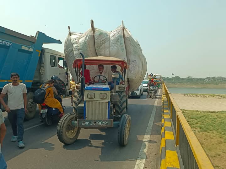 यमुना पुल पर ट्रेलर खराब होने से कानपुर सागर हाईवे पर लगा जाम