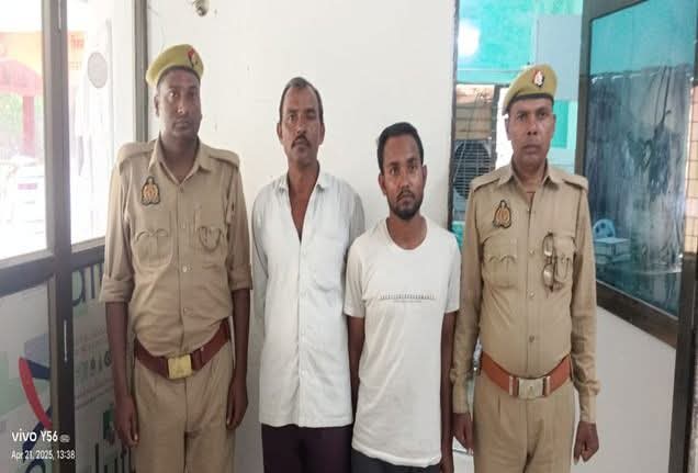 पुलिस अधीक्षक जौनपुर के द्वारा जनपद में अपराध की रोकथाम एवं अपराधियों/वारण्टीयों की गिरफ्तारी हेतु चलाये जा रहे विशेष अभियान के क्रम में अपर पुलिस अधीक्षक महोदय ग्रामीण के दिशा-निर्देशन एवं क्षेत्राधिकारी बदलापुर के निकट पर्यवेक्षण तथा प्रभारी निरीक्षक महराजगंज के कुशल नेतृत्व में थाना महराजगंज पुलिस टीम द्वारा न्यायालय द्वारा जारी गिरफ्तारी वारण्ट मु0नं0 8797/2023धारा 323 /504/506/427 भादवि से सम्बन्धित 02 वारण्टी अभियुक्तगण 1.विजय पाल बिन्द पुत्र रामलाल बिन्द उम्र करीब 55 वर्ष 2. मुरलीधर बिन्द पुत्र विजयपाल बिन्द उम्र 25 वर्ष निवासी गण ग्राम गोन्दालपुर थाना महराजगंज जनपद जौनपुर को आज दिनांक 21.04.2025 गिरफ्तार किया गया।