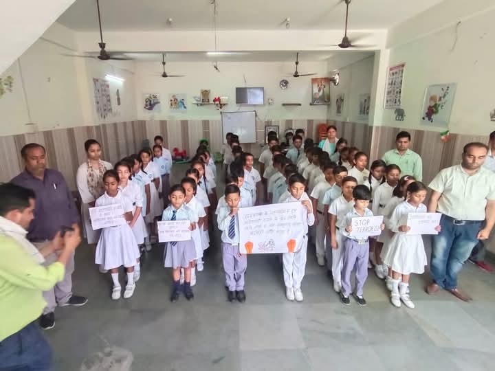 उपदेश टाइम्स, हमीरपुर। जम्मू कश्मीर के पहलगाम में हुए आतंकी हमले पर मासूम बच्चों ने दो मिनट का मौन धारण कर मृतकों की आत्मा की शांति के लिए ईश्वर से प्रार्थना की। इस दौरान बच्चों ने उन्हें श्रद्धांजलि भी अर्पित की।