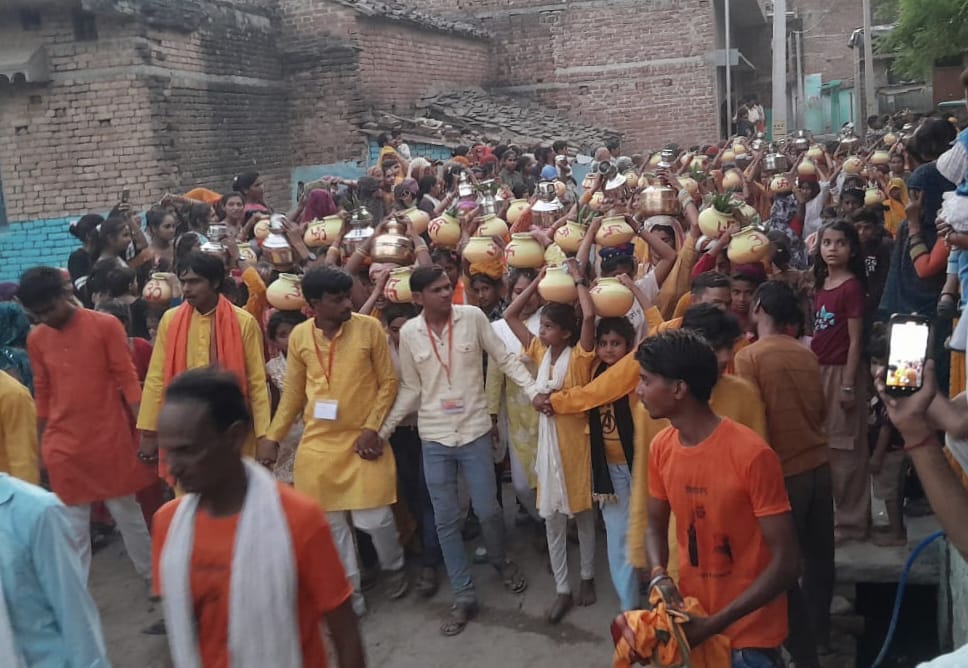 हमीरपुर : ग्राम पहाड़ी भिटारी में संकट मोचन धाम में हो रही यज्ञ में शुक्रवार को भव्य कलश यात्रा निकाली गई। यह कलश यात्रा ग्राम पहाड़ी के यज्ञ स्थल संकट धाम मंदिर से प्रारंभ हुई। जो गांव के विभिन्न मार्गों में घूमी और यज्ञ स्थल पर समापन हुआ।