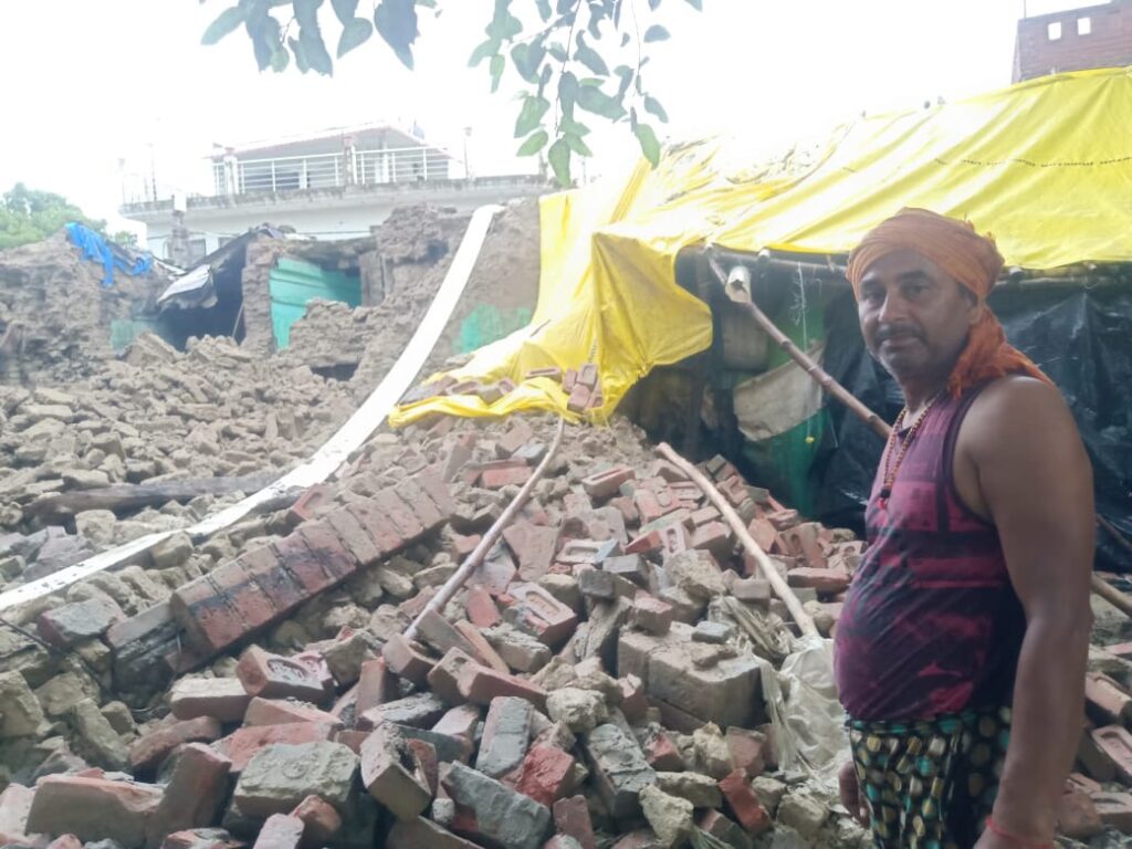 जबरदस्त बारिश में कच्चा मकान भर भरा कर गिरा, जिसमें तीन जानवर दब गए तथा इसमें एक गाय की घटना स्थल पर ही मौत हो गई