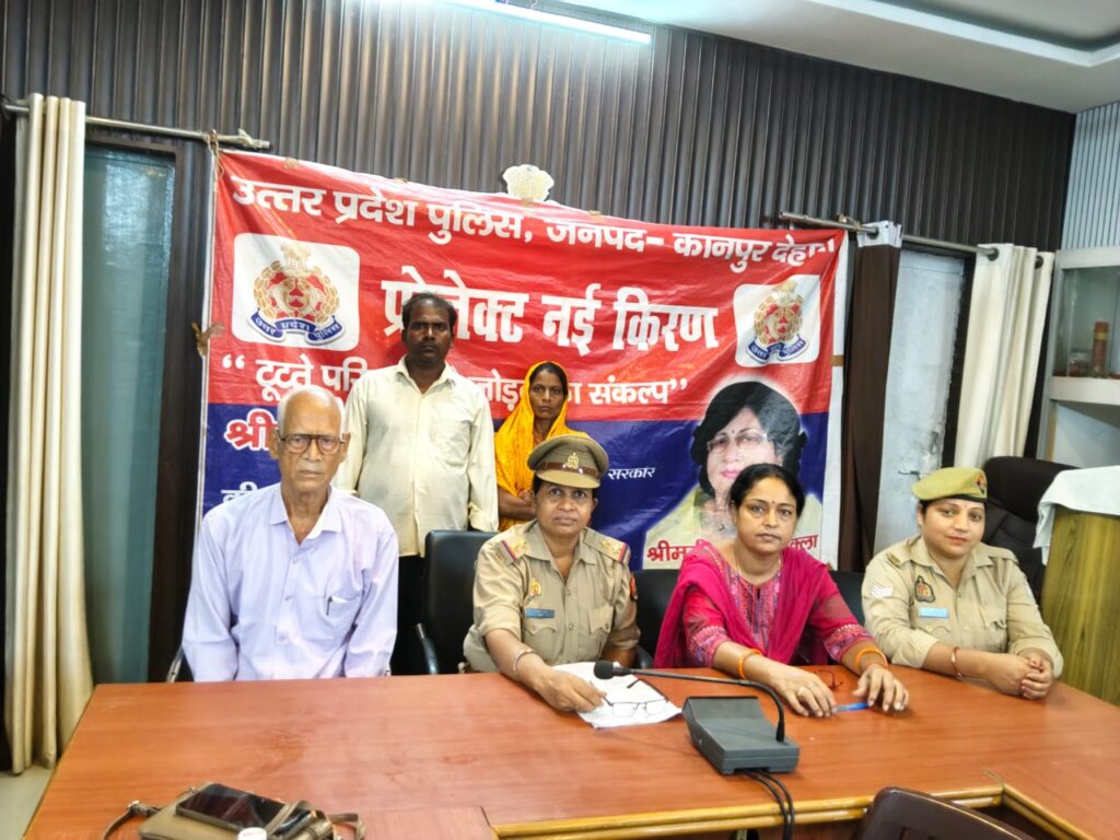 कानपुर देहात महिला सुरक्षा एवं सशक्तिकरण की दिशा में चल रहे अभियान “मिशन शक्ति 5.0” के अंतर्गत आज दिनांक 19.10.2025 को रिजर्व पुलिस लाइन कानपुर देहात आज दिनांक 19 10 2025 पुलिस स्थित सभागार कक्ष में प्रोजेक्ट नई किरण की शुरुआत पुलिस अधीक्षक श्रद्धा नरेन्द्र पाण्डेय के निर्देशन में की गई। नई किरण में *32* मामले आये, जिनमें नई किरण के सभी सदस्यों द्वारा समझाने के बाद *03 परिवारों* में आपसी सहमति के आधार पर समझौता कराया गया। पति-पत्नी खुशी-खुशी साथ रहने को तैयार हो गये, शेष प्रार्थना पत्रों में आगे की तिथि दी गयी। प्रोजेक्ट नई किरण के तहत बिखरे परिवारों को एक सूत्र में बांधने का प्रयास है।