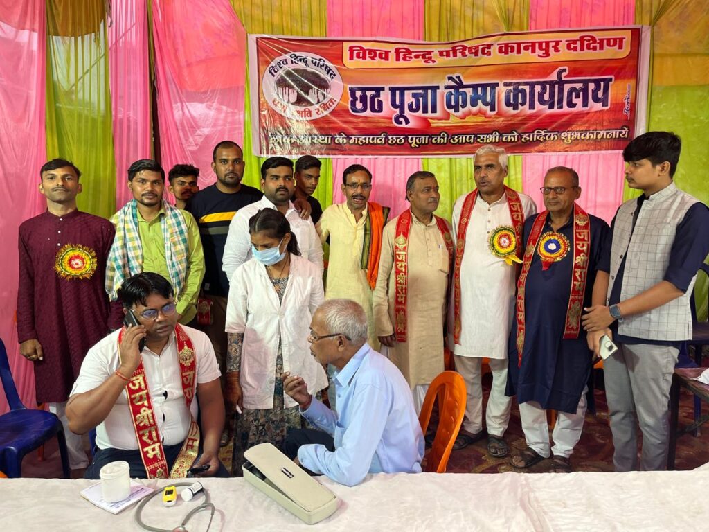 विश्व हिंदू परिषद् कानपुर दक्षिण द्वारा छठ महापर्व पूजा स्थल , गुजैनी पर चिकित्सा- सेवा – वितरण शिविर संपन्न जिसमे डॉ आर एन द्विवेदी जी और उनके पैनल द्वारा लगभग १०० लोगो के बीपी, ब्लड सुगर, अन्य स्वास्थ्य संबंधी जांचे की गईं एवं हिंदू समाज के प्रबुद्ध वर्ग के 51 जनों को सम्मानित किया गया ।