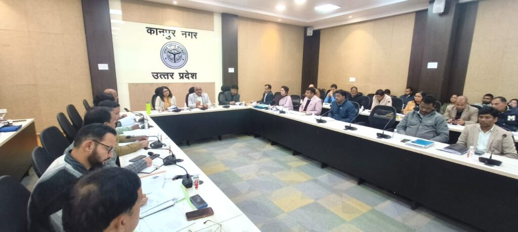 कानपुर नगर जिलाधिकारी जितेन्द्र प्रताप सिंह की अध्यक्षता में सरसैयाघाट स्थित नवीन सभागार में सीएम डैशबोर्ड पर प्रदर्शित विभागीय कार्यों तथा एक करोड़ रुपये से अधिक लागत वाले निर्माण कार्यों की