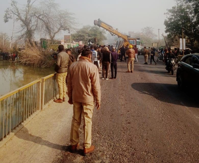 अनियंत्रित ट्रैक्टर बिधनू नहर में गिरा, हाइड्रा की मदद से निकाला गया ट्रैक्टर लगा लंबा जाम