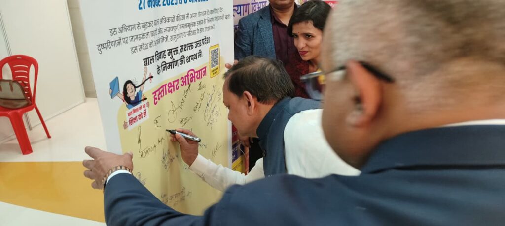 कार्यक्रम के दौरान सांसद रमेश अवस्थी, जिलाधिकारी जितेंद्र प्रताप सिंह और मुख्य विकास अधिकारी दीक्षा जैन ने बाल विवाह रोकने के लिए हस्ताक्षर अभियान का शुभारंभ किया।