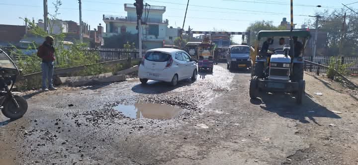 रेलवे क्रासिंग 31 में भारी भरकम गड्ढा रोज लगता है जाम
