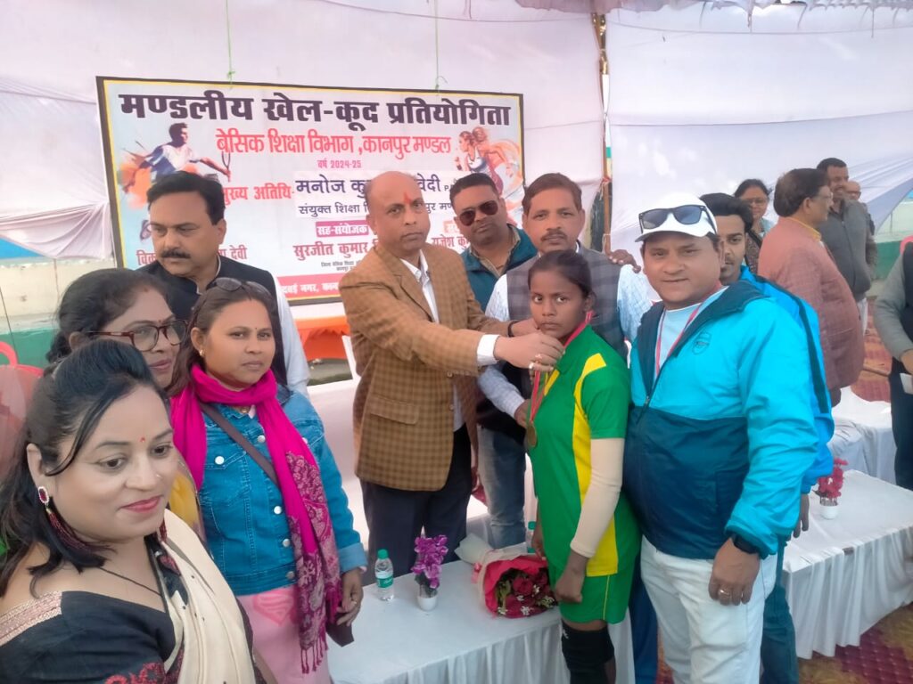 कानपुर।किदवईनगर स्थित स्व. रतनलाल स्मारक स्टेडियम में शिक्षा विभाग की दो दिवसीय मंडलीय क्रीड़ा प्रतियोगिता का समापन शुक्रवार को हुआ। इसमें कानपुर नगर मंडल विजेता और कानपुर देहात उपविजेता बना।मुख्य अतिथि संयुक्त शिक्षा निदेशक मनोज कुमार द्विवेदी और एडी बेसिक राजेश कुमार वर्मा ने विजेताओं को ट्रॉफी देकर पुरस्कृत किया। बीएसए सुरजीत सिंह ने विजेताओं को बधाई दी।