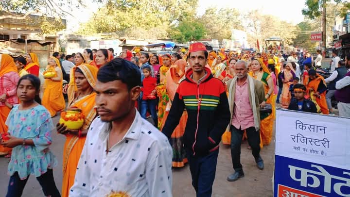 गत वर्षों की भति इस वर्ष भी भारी संख्या में बच्चे बुजुर्ग व युवा पीले वस्त्र धारण किए हुए महिलाएं सर में कलश लेकर कस्बे के बड़ी देवी मंदिर से शोभा यात्रा की शुरुआत कर थाना चौराहा माली कुआं चौराहा से तहसील रोड बंश नाला से होकर बड़ी देवी मंदिर में समापन किया गया शोभा यात्रा 7 फरवरी शुक्रवार के दिन पूर्व नियोजित ढंग से निकल गई 8 फरवरी से सप्त दिवसीय भागवत कथा एवं राम कथा की शुरुआत वृंदावन धाम से पधारेआचार्य श्री पुरुषोत्तम शरण जी महाराज के मुखारविंद से नगर वासी एवं क्षेत्रवासी रसपान कर अपने को धन्य बनाएंगे । शतचंडी महा यज्ञ एवं भागवत कथा 8 फरवरी से नियमित 1:00 से 5:00 बजे तक शास्त्री जी के मुखारविंद से कथा सुनाई जाएगी। राहुल राज एंटरप्राइजेज कानपुर की ओर से भव्य जागरण एंव झांकियां का प्रदर्शन 10 फरवरी से 16 फरवरी तक नियमित रूप से रात 8:00 बजे से किया जाएगा राम कथा शाम 5:00 बजे से शुरुआत की जाएगी यज्ञ की पूर्ण आहुति 16 फरवरी एंव सोमवार 17 फरवरी को विशाल कन्या भोज भंडारे का आयोजन किया जाएगा सभी नगर एंव क्षेत्रवासी भागवत कथा व मर्यादा पुरुषोत्तम राम कथा एवं झांकियां का आनंद लेकर पूर्ण लाभ अर्जित करें। शोभायात्रा में भक्ति में संगीत के साथ युवक यूतियां थिरकते कते नजर आए जहां यह दृश्य देखते ही बनता है