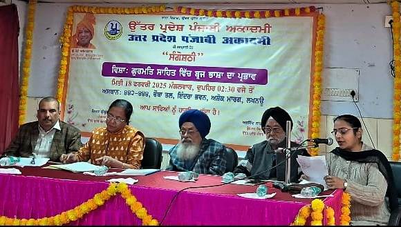 लखनऊ उत्तर प्रदेश पंजाबी अकादमी की ओर से ‘‘गुरमति साहित्य में ब्रज भाषा का प्रभाव” विषयक संगोष्ठी का आयोजन मंगलवार 18 फरवरी को इन्दिरा भवन के कक्ष संख्या 442-444, में किया गया। इसमें संदेश दिया गया कि गुरमति साहित्य में सामाजिक एकजुटता के लिए पंजाबी और उत्तर भारत की स्थानीय भाषाओं का प्रयोग किया गया। अकादमी के कार्यक्रम संयोजक अरविन्द नारायण मिश्र ने संगोष्ठी में उपस्थित सम्माननीय वक्ताओं को अंगवस्त्र और स्मृतिचिन्ह भेंट कर सम्मानित भी किया।