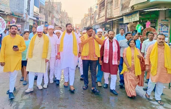 शोभायात्रा में श्रीराम,लक्ष्मण सीता व हनुमान जी,भारत माता,मां दुर्गा विश्वामित्र,जामवंत ,बाल्मीकि का वेश धरकर कलाकारों ने शोभायात्रा को बेहद मनमोहक बना दिया शोभायात्रा में चल... Read More