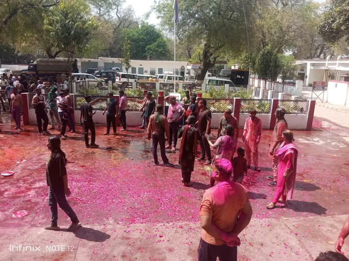 त्योहार संपन्न कराने के बाद होली रंग में डूबे पुलिस कर्मी, एक दूसरे को रंगा