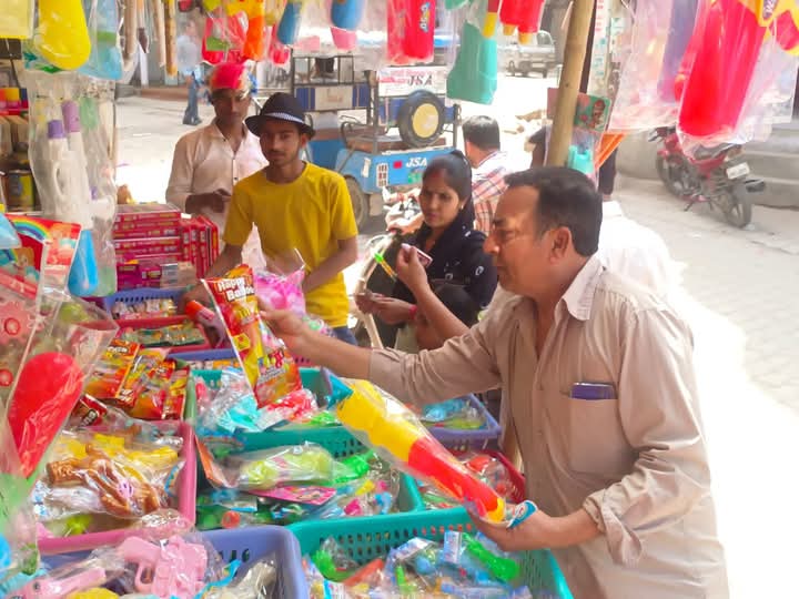 पिचकारी, रंग-गुलाल की जमकर हुई बिक्री, बाजारों में रही भीड़