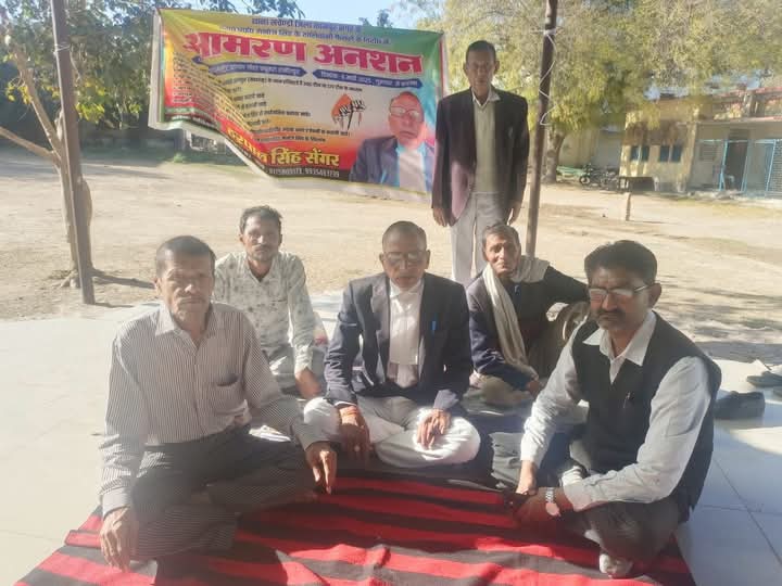 कलेक्ट्रेट के गोल चबूतरे में आमरण अनशन पर बैठा वरिष्ठ अधिवक्ता