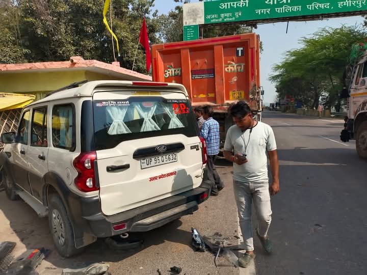 पीडी की गाड़ी में गिट्टी लदे कंटेनर ने मारी टक्कर, बाल-बाल बचीं अधिकारी