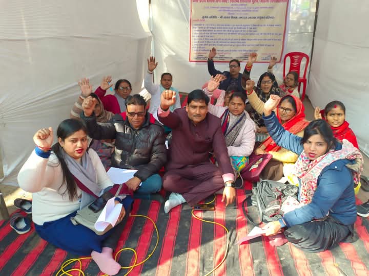 धरना प्रदर्शन में बोले स्वास्थ्य कर्मी, हमारी मांगें पूरी हों-चाहे जो मजबूरी हो
