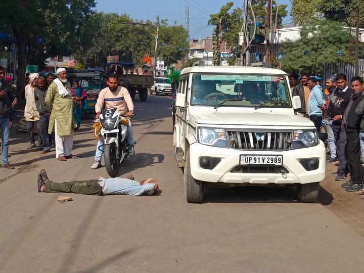 सड़क के बीचोबीच लेटकर सफाई कर्मी ने किया हंगामा, लगी भीड़