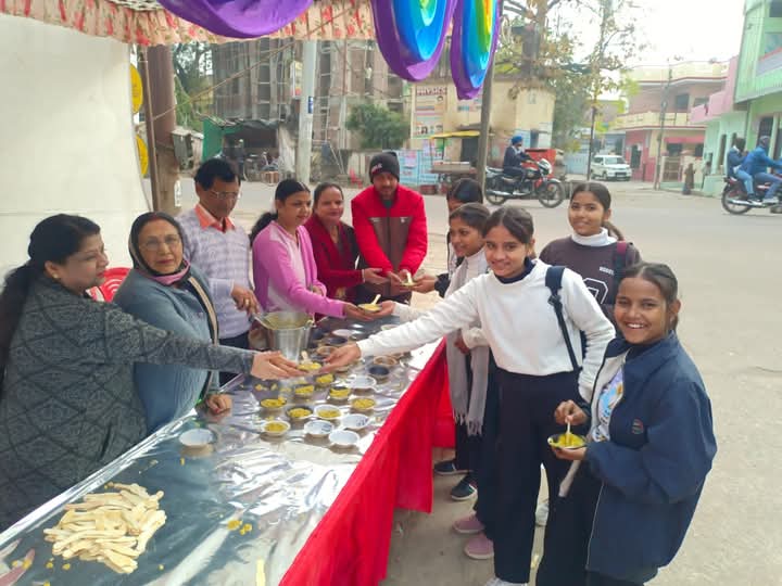 महिला मंडल ने लोगों को खिचड़ी वितरण करके दी मकर संक्रांति की बधाई