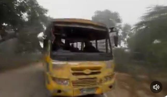 टूटे शीशे की बस में सर्दी में लाए जा रहे बच्चे, वीडियो वायरल