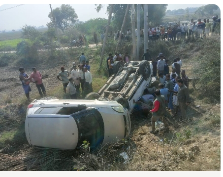 भोजपुर विधायक का परिवार सड़क हादसे का शिकार: कैंची धाम जाते समय राजेपुर में दो कारों की भिड़ंत, खड्डे में गिरी कार