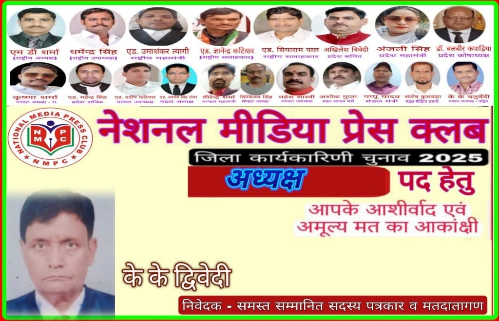 नेशनल मीडिया प्रेस क्लब के चुनाव में अध्यक्ष पद उम्मीदवार के के द्विवेदी कों मत व सपोर्ट देकर भारी मतों से जिताएं आपके मत सपोर्ट... Read More
